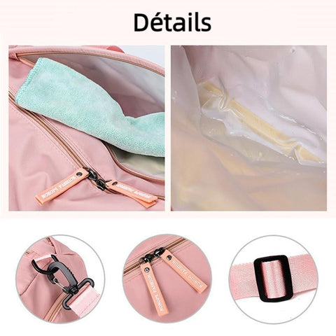 • 🔥Séparation humide-sec: Le sac dispose d'un séparateur interne qui vous permet de séparer les vêtements humides des vêtements secs ! Ne craignez plus de devoir rentrer rapidement chez vous pour éviter l'odeur nauséabonde des serviettes mouillées!