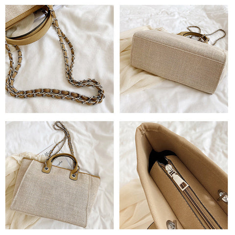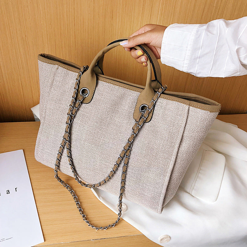 • Contenu de l'emballage: 1 * sac fourre-tout en toile pour femme avec sangle en chaîne.