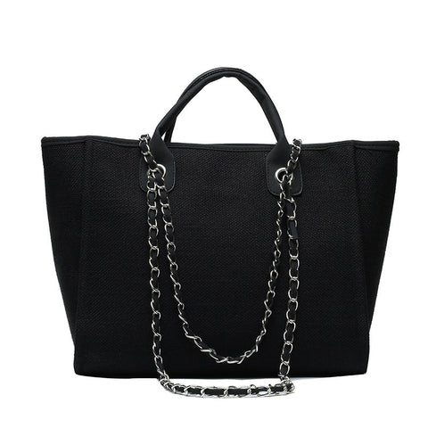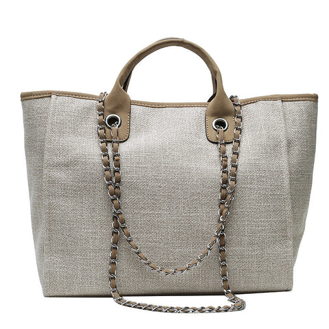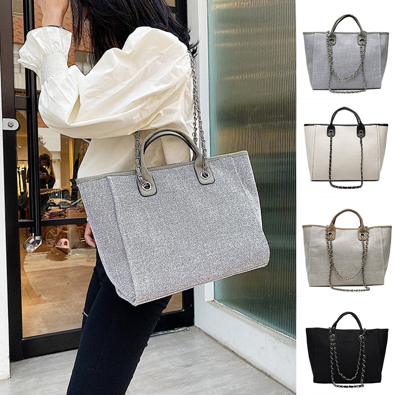 Sac fourre-tout en toile à bandoulière pour femmes, sac seau à sangle en chaîne