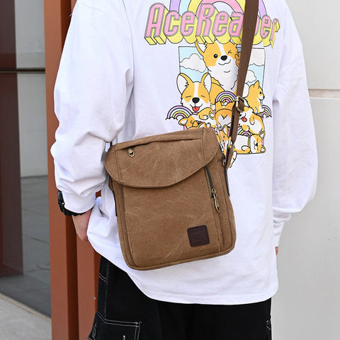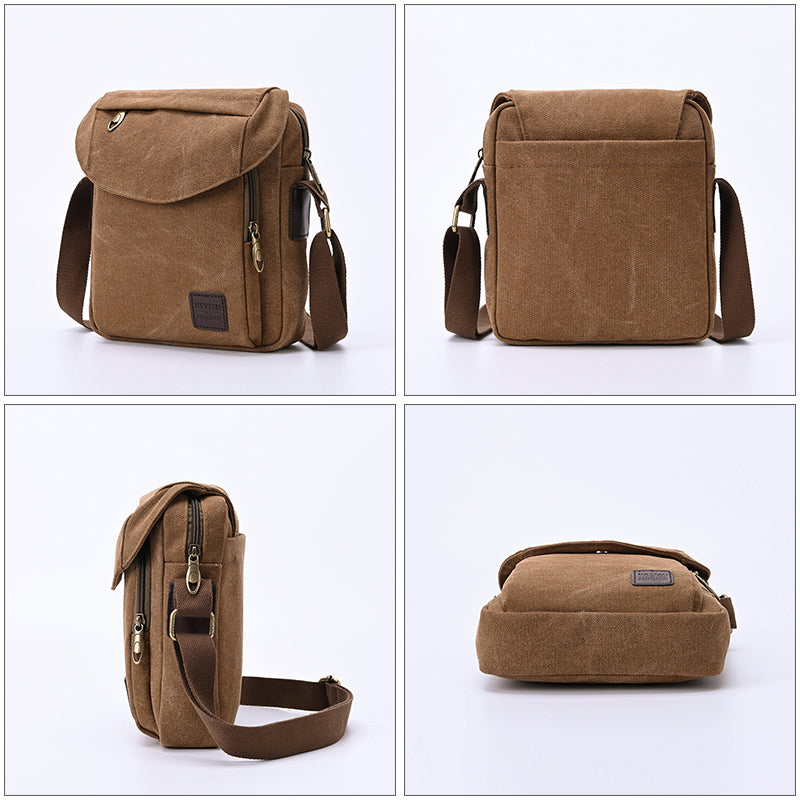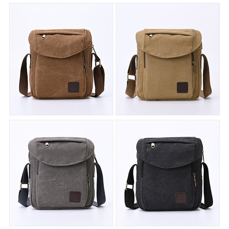Matériau principal: fabriqué en toile de coton haute densité et fermetures éclair en cuir PU. C'est un sac à bandoulière très résistant.