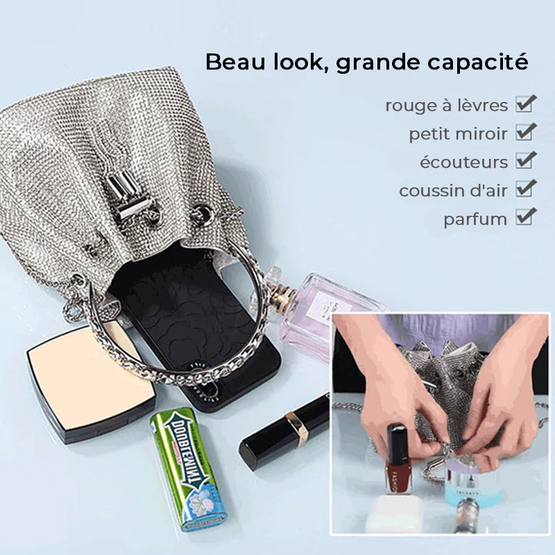 La nouvelle pochette utilise des strass éblouissants, une doublure en satin doux de haute qualité, un cordon supérieur qui peut être ouvert et fermé en douceur.