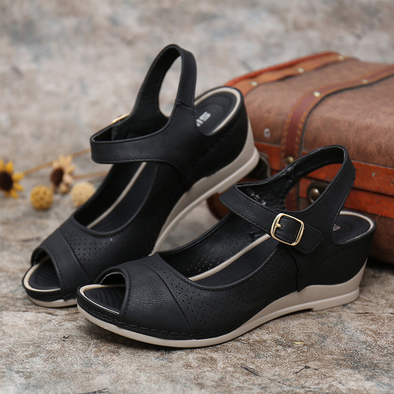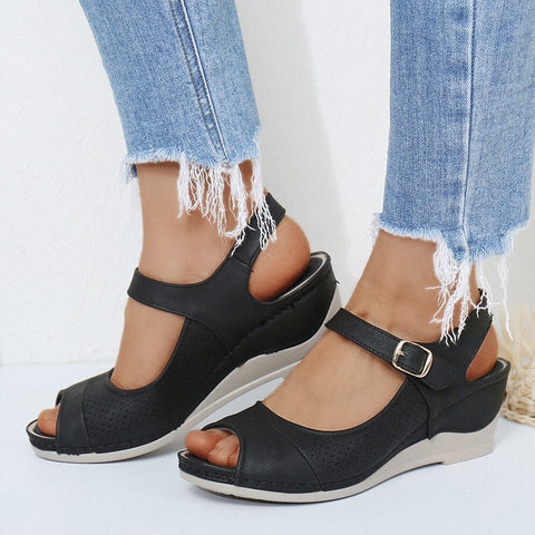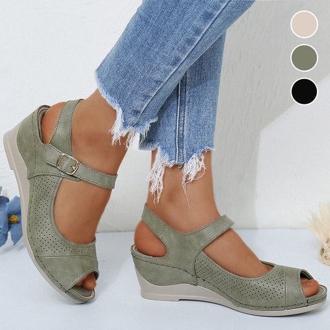 • 【Style unique】Cette sandale compensée avec bout ouvert et boucle est parfaite pour tous les événements. Emportez ce classique partout avec vous pour un look estival frais et tendance.