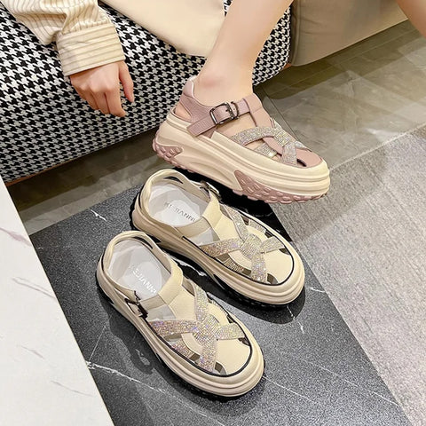 • 1 paire * Sandales plateforme strass creux femme