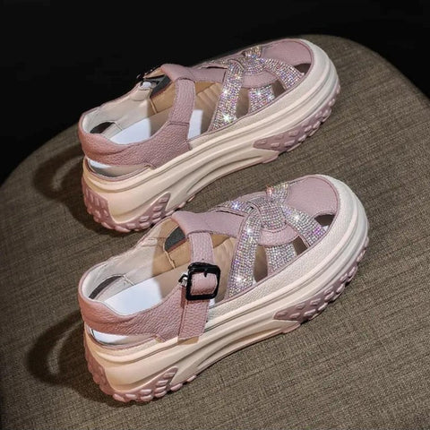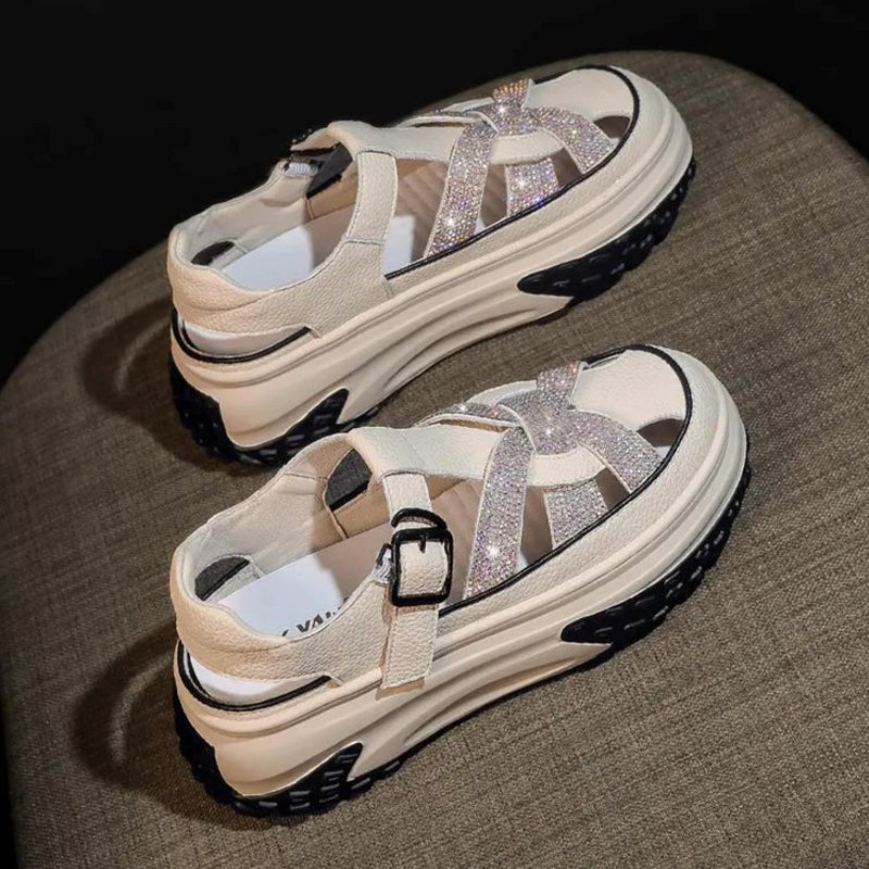 Sandales plateforme strass creux femme