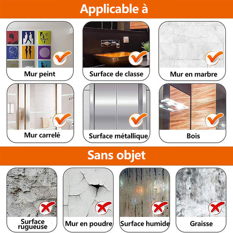 Conseils chaleureux : Notre ruban adhésif double face pour mur est uniquement utilisé sur une surface lisse, propre et sèche. Tout mur électrique, mur peint, surface inégale ou articles irréguliers ne sont pas recommandés. Ce ruban de montage est un adhésif très fort, il colle bien ou pas, cela dépend vraiment de la surface ou s'il colle au bon endroit en fonction du point de stress de l'objet.
