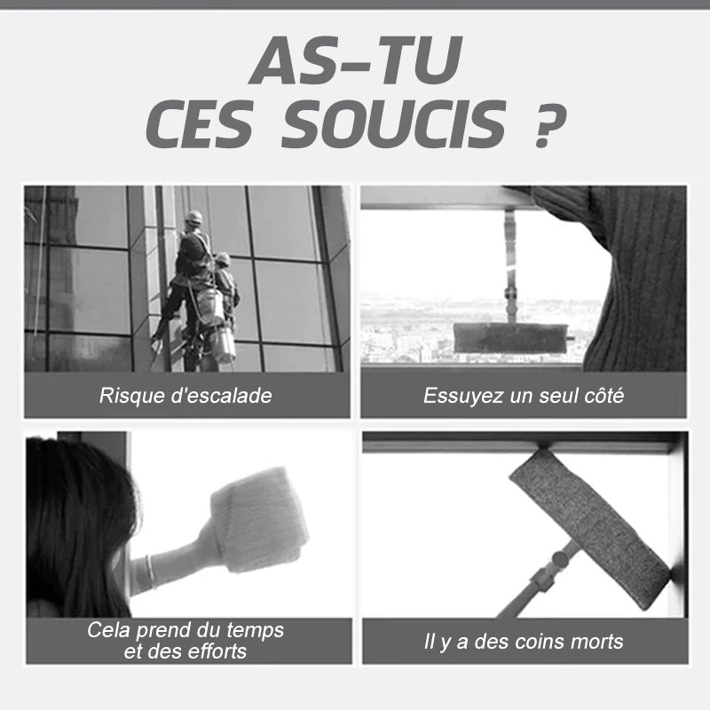 Le nettoyage des vitres peut être assez difficile, surtout lorsque vous devez également traverser la vitre de l'autre côté. Cela prend deux fois plus de temps et deux fois plus d'efforts.