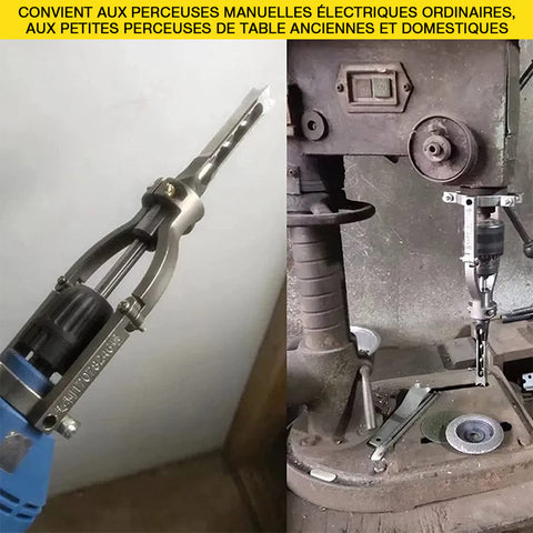 🧰【Fixation pour perceuse à trou carré】Parfait pour percer des trous droits ou angulaires, sur le bord d'une planche ou sur un stock rond.Convient aux petites perceuses électriques ordinaires, aux perceuses de table à l'ancienne et aux perceuses de table domestiques.