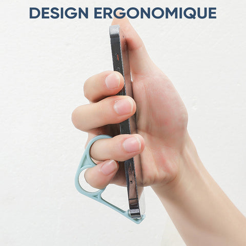 • Conception de la bague : la conception de la bague humanisée offre des possibilités infinies. La forme de l'anneau s'adapte parfaitement à diverses situations et empêche votre téléphone de glisser des mains dans des situations bondées. Protégez votre téléphone lorsque vous marchez, voyagez, faites de la randonnée, jouez à des jeux ou prenez des selfies d'une seule main.