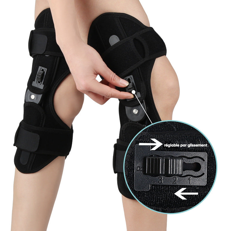 Sécurité recommandée - Des charnières très résistantes avec des curseurs de verrouillage des deux côtés réduisent la flexion et prolongent le mouvement, offrant stabilité et protection aux genoux fragiles et blessés. Vous pouvez contrôler l'amplitude de mouvement de votre genou en fonction de son rétablissement.