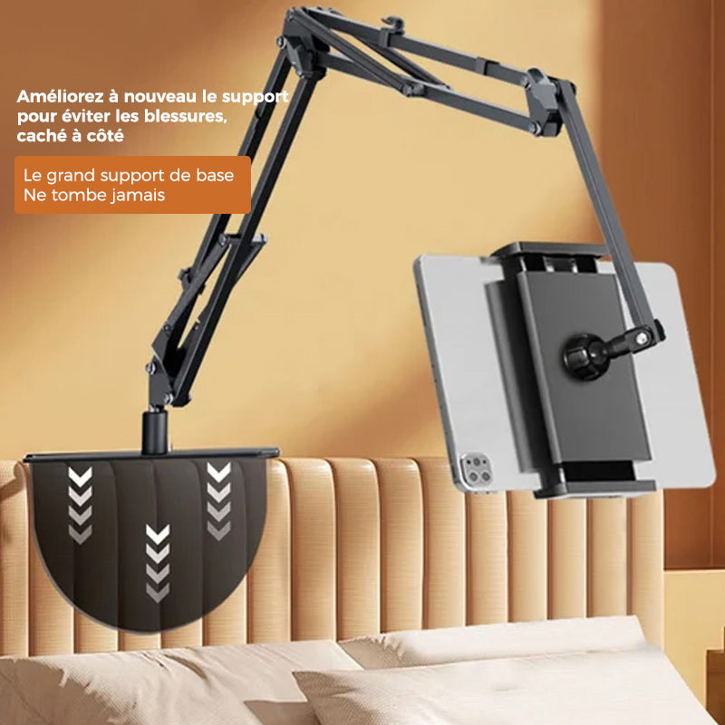 Vous pouvez l'utiliser dans n'importe quel espace ou surface, comme une tête de lit, un canapé ou un bureau. Vous pouvez vous tenir debout, vous asseoir, vous pencher ou même vous allonger, libérer vos mains et profiter de ce support à bras robotique.