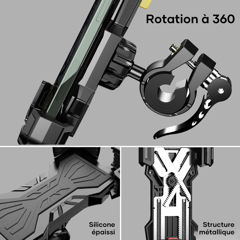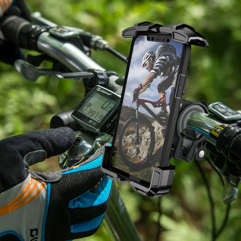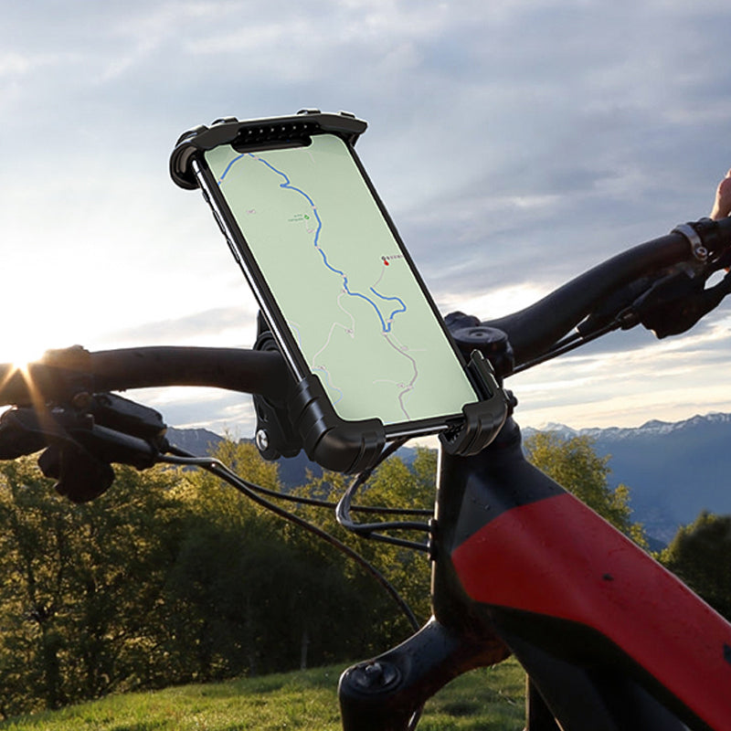 🚲 Robuste et sûr - la forme spéciale de ce support de téléphone pour moto et vélo saisit fermement votre téléphone dans tous les coins. Il garantit que votre téléphone est solidement fixé au guidon de votre vélo, même sur les routes cahoteuses.
