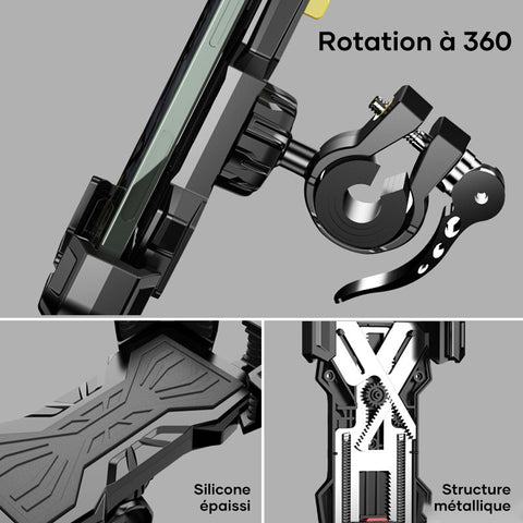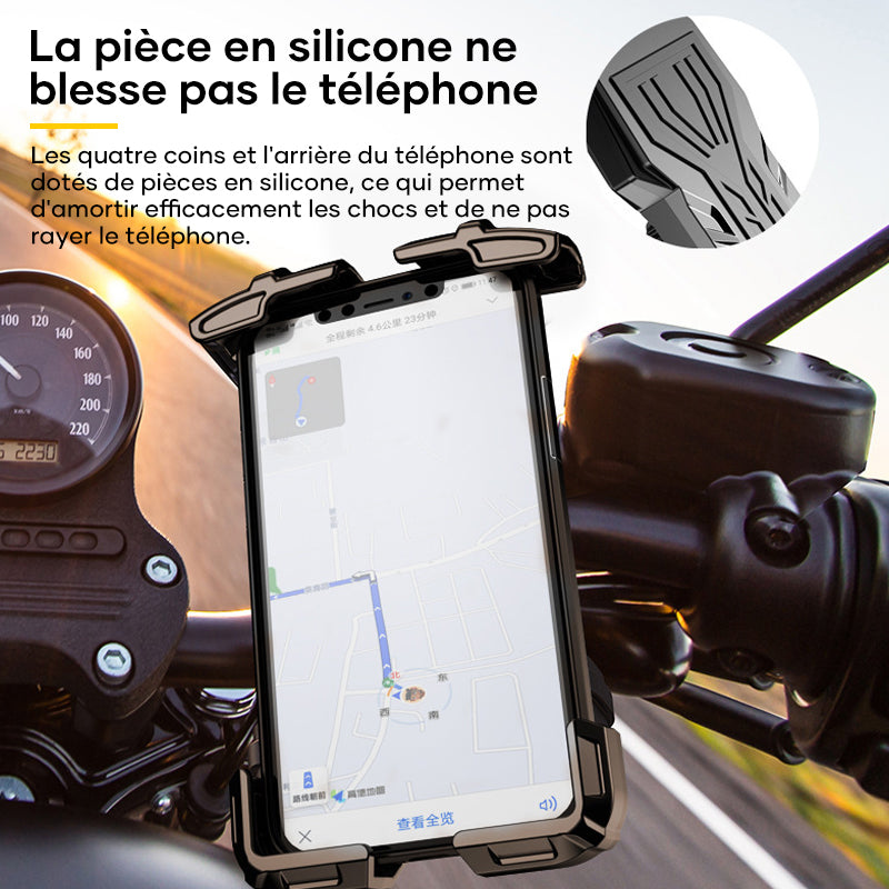 🚲Protection anti-vibration - Ce support réglable pour téléphone de vélo est équipé d'un coussin en silicone qui protège votre téléphone des rayures et des chocs. Le support de téléphone pour moto maintient parfaitement votre téléphone en place pendant que vous roulez.