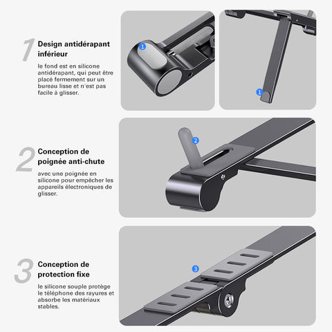 • Design ergonomique: Augmentez la hauteur pour éviter de regarder le téléphone. Permet de réparer la posture et de soulager la fatigue du cou, les maux de dos et la fatigue oculaire.
