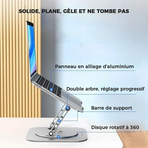 Rotation à 360°: Rotation à 360°, facile à changer l'angle du support d'ordinateur portable, à tout moment pour faire face à différentes occasions nécessitant l'angle, et le son émis par la rotation du support est très décompressif.