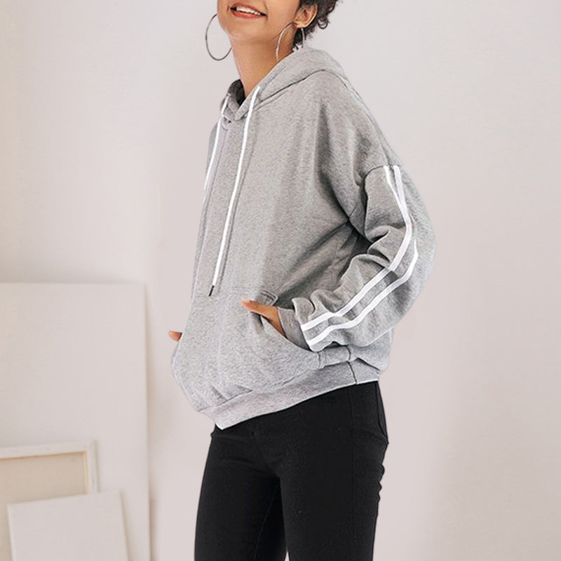 • Un sweat-shirt décontracté de couleur unie avec une fermeture zippée et deux poches kangourou spacieuses pour un rangement facile.