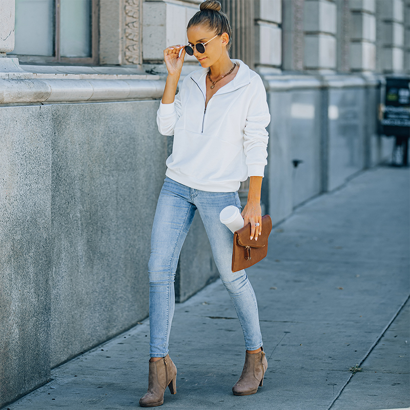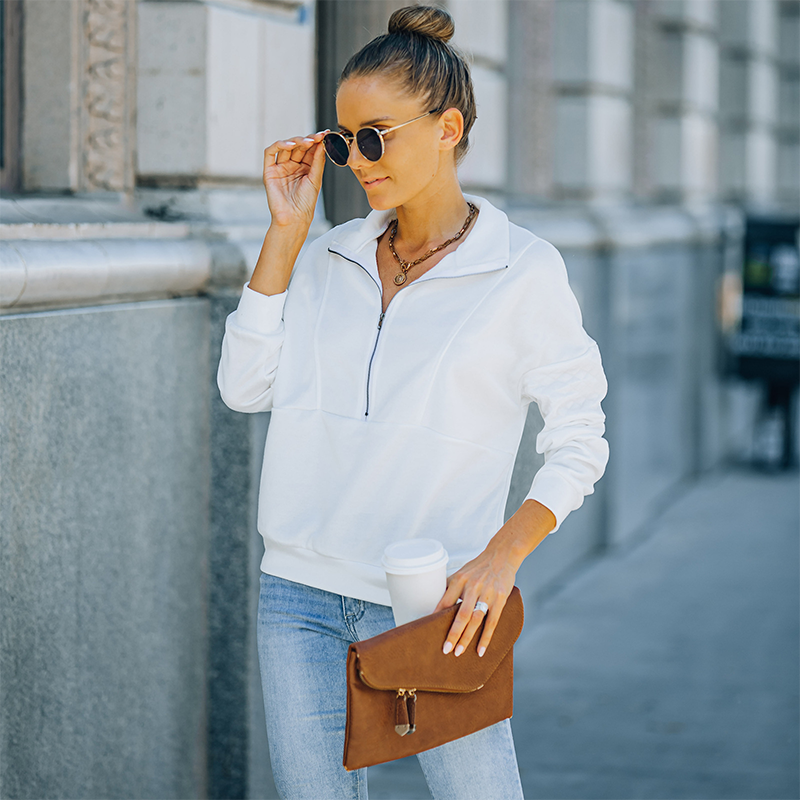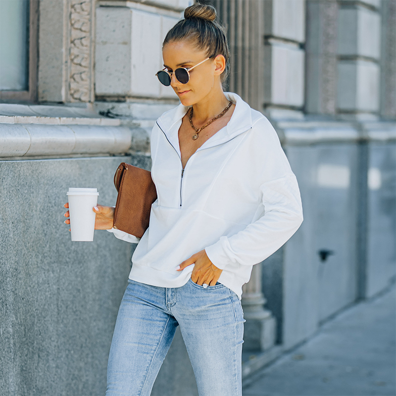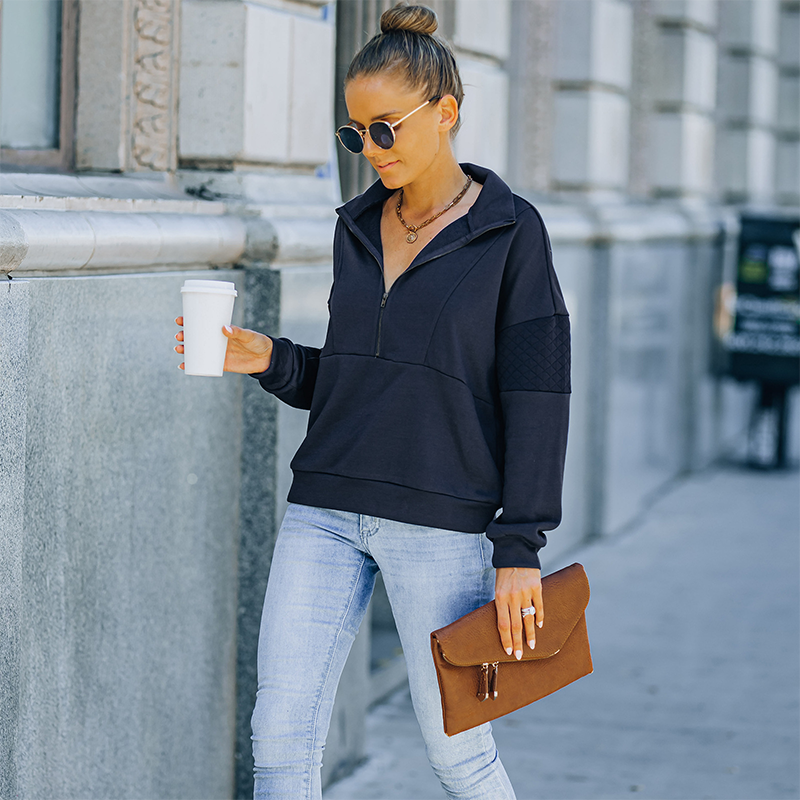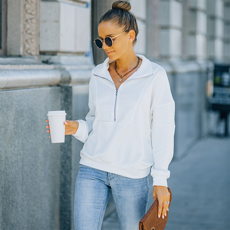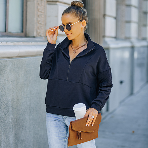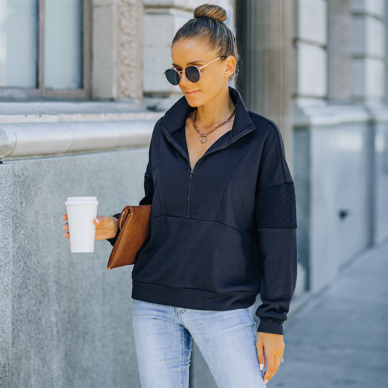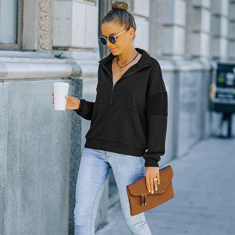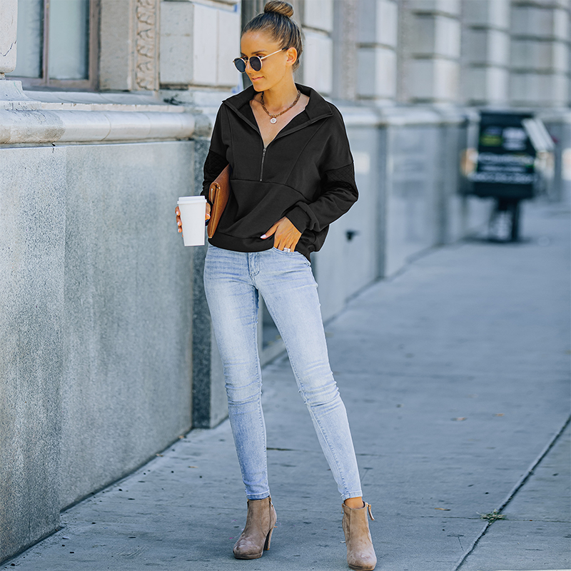 • 🧥Sweat à revers - Ce sweat ample offre un look tendance et un style décontracté. La conception à demi-fermeture éclair et revers vous rend élégant et glamour. Convient à la vie quotidienne.