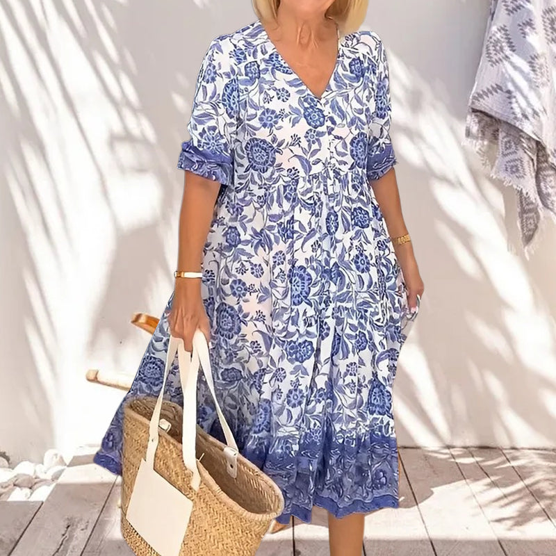 🌵 Affichez votre style bohème décontracté en portant ce maxi fluide doté d'un imprimé floral vibrant et d'une taille flottante.